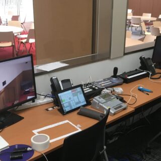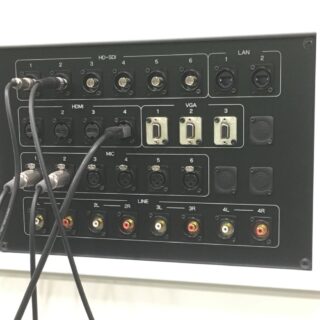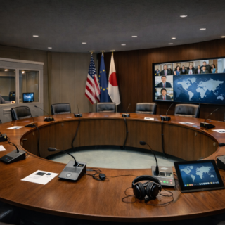 舞台裏から多彩なビジネスシーンを実現する — 先進企業の多機能イベントスペースを支える最新制御システム。この写真は、大規模企業内に設置された多目的ホールの中枢神経とも言えるオペレーションルームです。 最大300名を収容可能なメインホールは、...