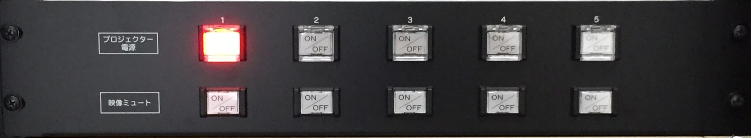 この問題を解決するため、当社では各プロジェクターを個別に制御できる専用コントロールシステムを開発・導入。 壁面に設置された直感的なタッチパネル式操作盤により、電源のON/OFFとミュート機能をプロジェクターごとに独立して操作できる環境を実現しました。