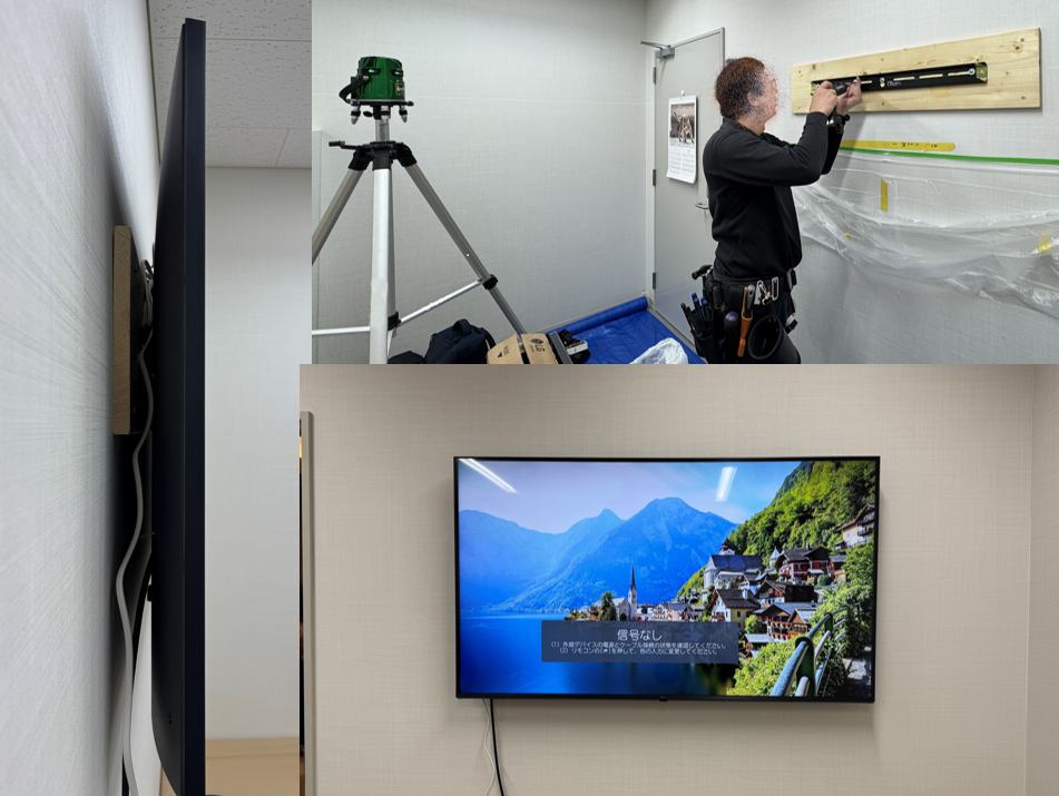 お客様より「石膏ボードの壁面にモニターを美しく取り付けたい」とのご依頼をいただきました。